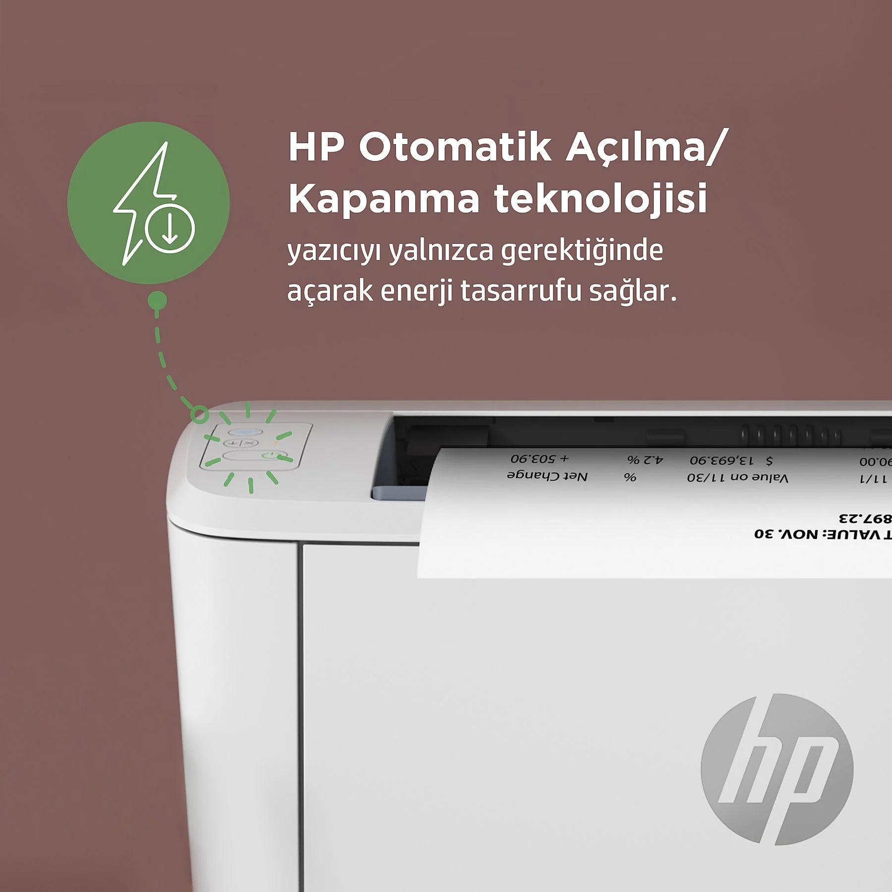 HP Otomatik Açılma/Kapanma Teknolojisi: Akıllı teknoloji, yazıcınızı ihtiyacınız olduğunda açar ve ihtiyacınız olmadığında kapatır.[7]