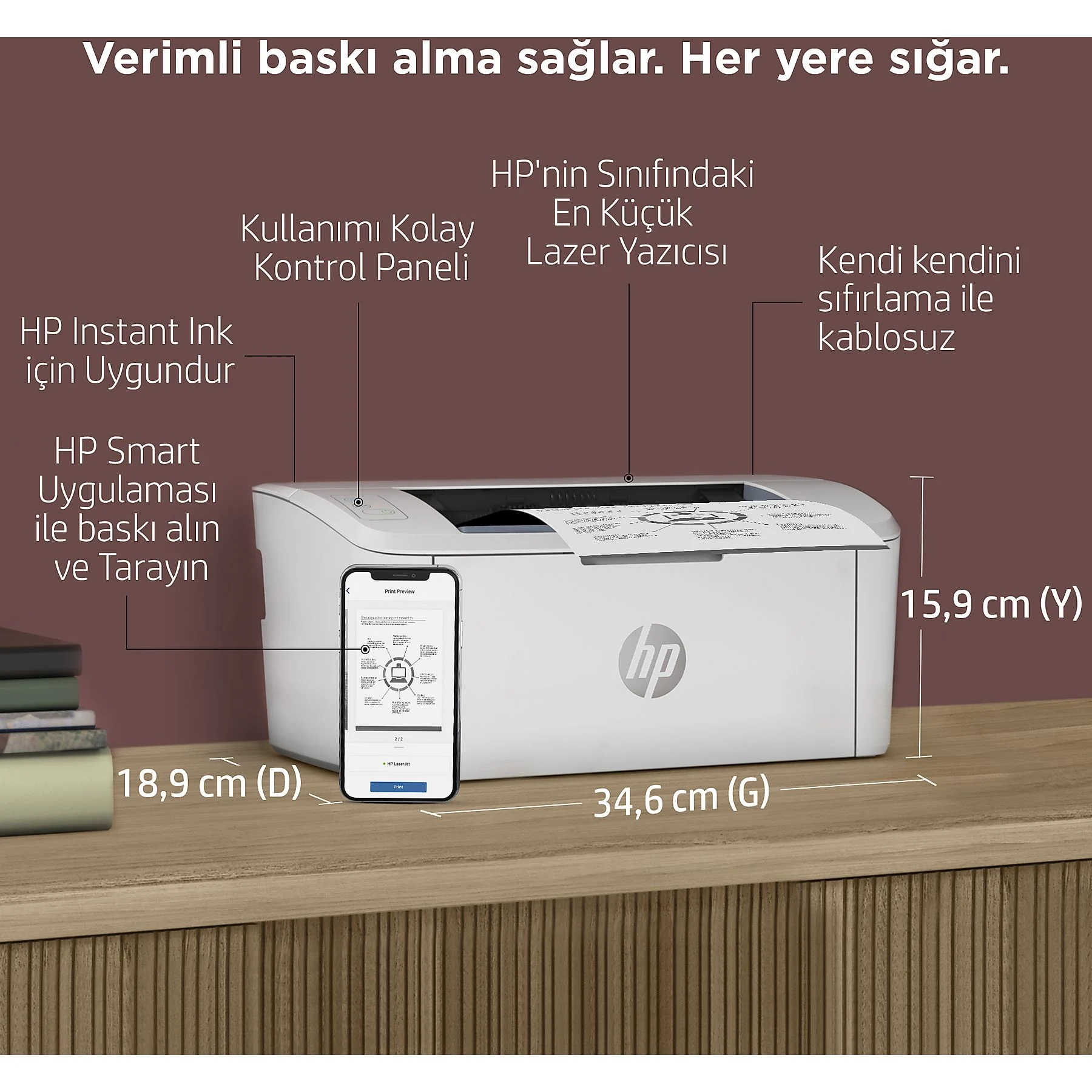 Bu kadar küçük bir LaserJet neredeyse her yere sığabilir.